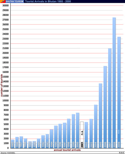 Overall arrivals in Bhutan the first nine months of 2009 were down four percent. No recent figures are available for Pakistan and Bangladesh, but arrivals in Iran appear to have been holding up well, though the monthly figures are erratic. Arrivals in India (which account for half of the total in South Asia) have been affected by a succession of terrorist attacks and by fears about the spread of the flu epidemic in the country. After falling sharply in Q1, they stabilised in Q2 and then declined again in Q3. Available figures for October and November look slightly better, but the trade reports continued weakness in hotel occupancy rates and other ground prices. However, domestic tourism, on which the Ministry of Tourism has been concentrating its promotional efforts, and tourism in the southern states are said to be doing relatively well.