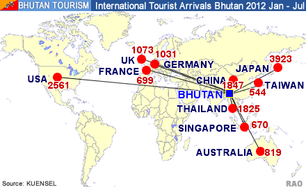Tourist arrivals from China also saw a record increase last year with 2,896, making it the third biggest group visiting Bhutan, and surpassing major markets like UK and Germany. Until July this year, tourist arrivals from China stood at 1,847.