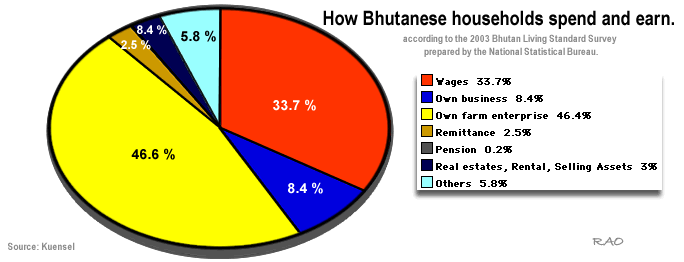 farming was a source of income for about 46 % of the Bhutanese and salary