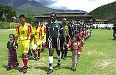 their way onto the pitch the Bhutanese crowd, usually known to favour visiting