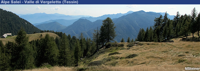 Von Comologno (1'085 m ü.M.) durch das Val Lavadina zur Alpe Salei (1'777 m ü.M.) aufsteigen. Von der Alpe Salei kann man zur Alpe Pesced (1'778 m ü.M.) und wieder hinunter nach Spruga (1'113 m ü.M.) marschieren.