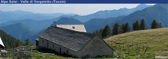 Von der Alpe Salei aus kann man den Munzelüm (2'061 m ü.M.), den Creste (2'060 m ü.M.), den Pilone (2'191 m ü.M.) und den Pizzo Zucchero (1'899 m ü.M.) besteigen. Man kann aber auch schöne Wanderungen auf die Alpe Arena (1 Std. 15 Min.), auf die Alpe Porcarese (2 Std. 45 Min.) oder hinunter nach Vergeletto (3 Std.) unternehmen. |