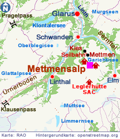 | Die Mettmen erreicht man am besten über Kies. Kies liegt am Ende einer rund 6 km langen geteerten Fahrstrasse, welche in Schwanden anzusteigen beginnt. Die Strasse ist für Autos gut befahrbar.