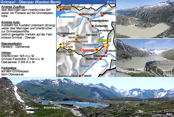 Bern, Berner Oberland, Gelmersee, Grimsel, Grimselpass ,Grimselsee, Handeck, Haslital, Kraftwerke Oberhasli, Oberaargletscher , Sidelhorn, Totensee, Unteraargletscher |