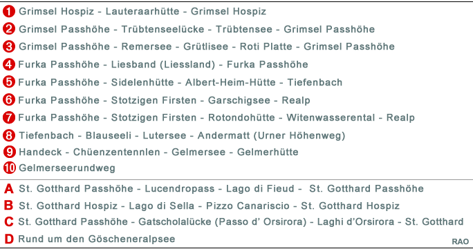 Marschzeiten ab Handeck und Grimsel Passhöhe