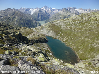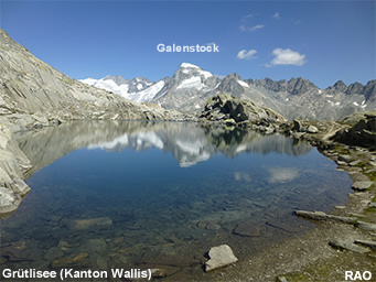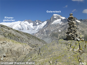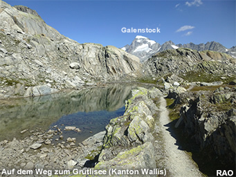 Ab dem «grosse Stei», einer Hugelkuppe mit einem «Steimanndli», windet sich der Bergwanderweg abwärts zur «Roti Blatte» und weiter hinunter zur Seitenmoräne des Rhonegletschers. Am talseitigen Ende der Seitemoräne zweigt der Rundweg nach rechts ab und führtsteil bergwärts durch das Bärenritz, einem kleinen Tal, hinauf zum rund 300 Meter höher gelegenen Grütlisee. Der Weg ist nicht immer gut zu finden. Im oberen Teil folgt er teilweise einem alten Säumerweg, der durch einige gut befestigte Passagen beeindruckt.