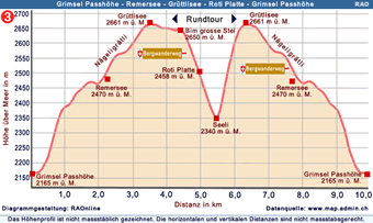 Die Wanderung beginnt auf dem Grimselpass, wo es Unterkunft und Verpflegung gibt. Auf dieser Wanderung gibt es keine ausgebauten Rastplätze oder Verpflegungsmöglichkeiten. Auf dem Grimselpass stehen Parkplätze zur Verfügung. Das Postauto fährt täglich aus beiden Richtungen über den Grimselpass .