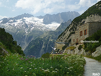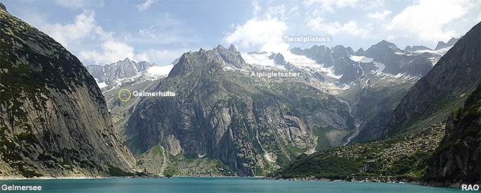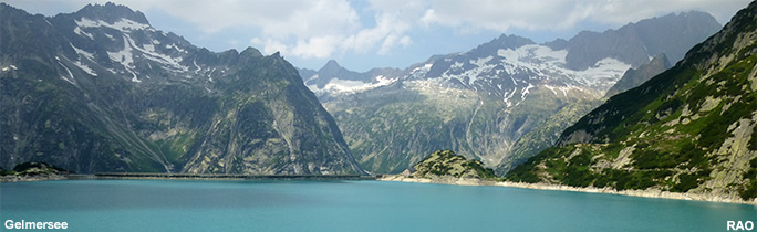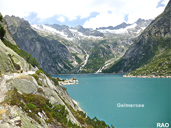 Rund um den Gelmersee gibt es keine Verpflegungsmöglichkeiten oder Rastplätze mit Feuerstellen. An zahlreichen Stellen lohnt es sich, etwas zu verweilen und das vielfältige Alpenpanorama zu geniessen |