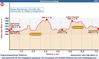 Der Grimselrundweg ist in rund 2 Marschstunden zu bewältigen. Der Bergwanderweg eignet sich für junge und alte Menschen, welche schwindelfrei sind. Der Weg von der Bergstation der Gelmerbahn nach Undrist Diechter (1'854 m ü.M.) und weiter über das Mündungsgebiet des Alplibaches und wieder zurück über Gelmersee-Staumauer (1'860 m ü.M.) zur Bergstation wurde teilweise in steil abfallende Felswände gesprengt. Einige Stellen sind mit Stahlseilen gesichert. Der Wanderweg weist nur wenige flache Abschnitte auf.