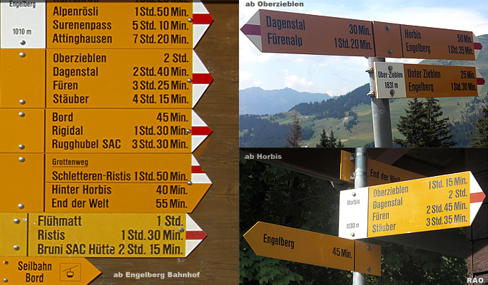 Marschzeiten: Fürenalp - Dagenstal - Oberzieblen - Horbis (End der Welt) - Engelberg