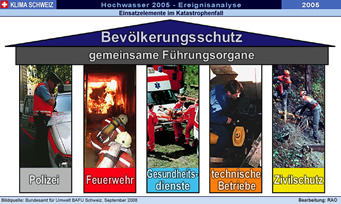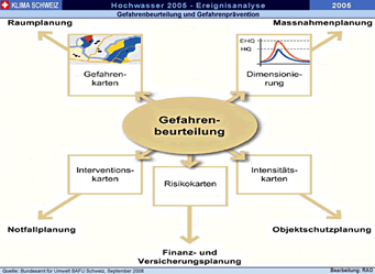 präventive Massnahmen ( Die Ereignisanalyse des Hochwassers 2005 hat Stärken und Schwächen des Umgangs mit Naturgefahren in der Schweiz aufgezeigt. Die kurzfristig umsetzbaren Optimierungsmassnahmen wurden schon während der Analyse in Angriff genommen, andere sind projektiert. Für Bundesrat Leuenberger steht angesichts der Analyse fest: "Politik, Behörden und Bevölkerung sind auch weiterhin gefordert. Ein integrales Risikomanagement ist eine Daueraufgabe, der wir alle uns zu stellen haben."