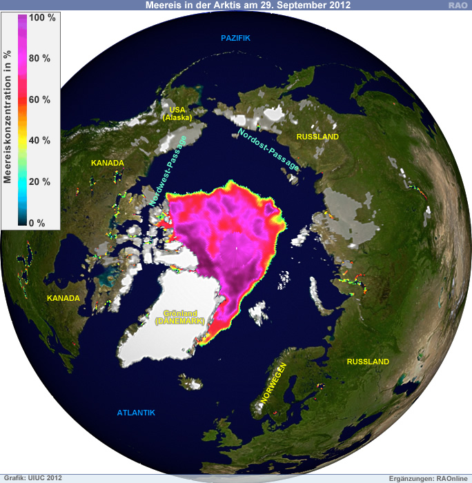 Meereiskonzentration in der Arktis und in der Antarktis 2010-2012