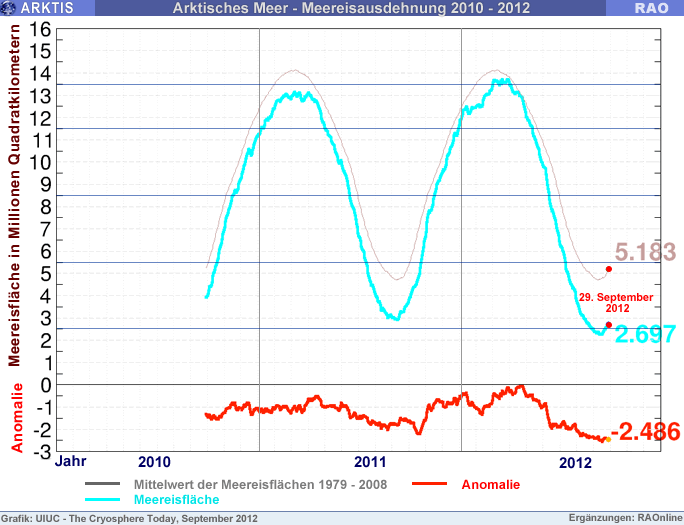 Meereiskonzentration in der Arktis und in der Antarktis 2010-2012