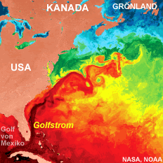 von der Wetterkarte vertraut, läuft auch die Strömung des Golfstroms