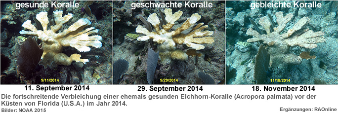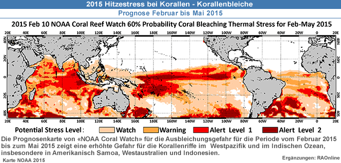 Die Wissenschaftler der NOAA befürchten, dass sich das Ausbleichen im Verlaufe des Jahres 2015 weiter nach Tuvalu, Samoa und Amerikanisch Samoa ausbreiten wird.