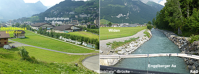 Die Brücke zur Bänklialp ist ein zentraler Punkt im ganzen Hochwasserschutzprojekt Engelberger Aa. Sie muss so dimensioniert sein, dass im Ereignisfall nicht nur das Hochwasser, sondern auch der Überlastfall so abgeleitet werden kann, dass kein Wasser von der Engelberger Aa mehr ins Dorf gelangt. Sämtliche neun Brücken und Stege im Projektperimeter Engelberger Aa sind Bestandteil des Gesamtkonzepts. Für die Finanzierung der Neubauten existiert ein fertig verhandelter Kostenteiler zwischen Wasserbau-Projekt und Werkeigentümerin. Teile von Hochwasserschutzmassnahmen ohne Subventionsverfügung des Bundesamtes vorzeitig zu realisieren, ist nicht möglich. (aus: Gemeinde-Info, Einwohnergemeinde Engelberg vom 9. Juni 2011)