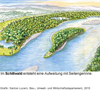 Im oberen Teil des Abschnitts ist vorgesehen, die Dämme neu aufzubauen, zu erhöhen und zu verstärken. Ab dem Schiltwald soll die Reuss aufgeweitet werden. Steht mehr Platz zur Verfügung, sinkt der Hochwasserspiegel und Zuflüsse zur Reuss werden weniger rückgestaut. Dies bietet die Möglichkeit für ökologische Aufwertungen der Landschaft. Das Wegnetz für Fussgänger, Radfahrer und Reiter sowie die Erholungsgebiete werden optimiert.