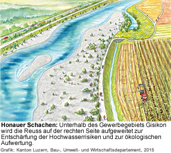 Das Hochwasser im Jahr 2005 hat in den Gebieten der Kleinen Emme und der Reuss Schäden von rund 345 Millionen Franken angerichtet. Der Kanton Luzern hat als Reaktion darauf Sofortmassnahmen angeordnet und im Auftrag des Kantonsrates das Projekt «Hochwasserschutz und Renaturierung Reuss» initiiert.
