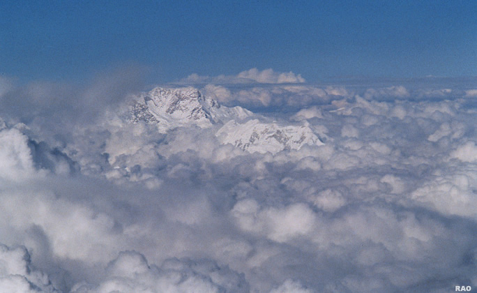 Cumulus-Schicht umgibt den Kanchenzönga (Himalaja)
