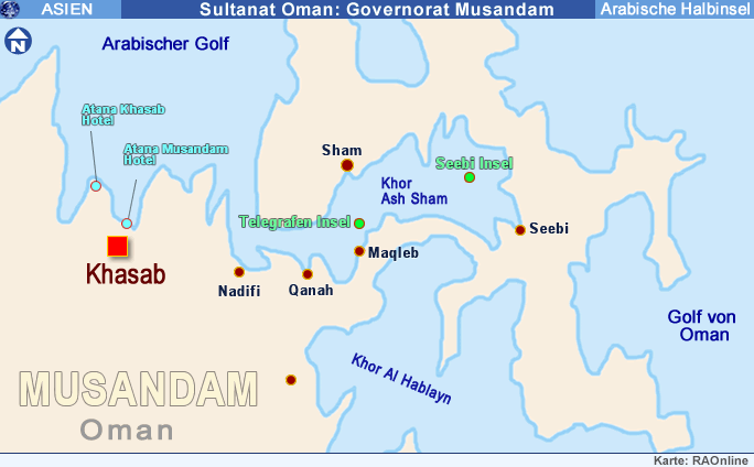 Am östlichsten Ende des Khor Shams liegt die Siedlung. Diese Siedlung unterscheidet sich nicht von den anderen Dörfern im Khor. Vor der Küste liegt die kleine Seebi-Insel. Die Gewässer um die Insel eignen sich zum Schnorcheln und Baden.