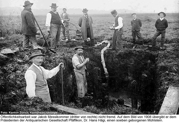 Wetzikon: Die Fundstelle im Robenhauser Riet ist forschungsgeschichtlich absolut einmalig und untrennbar mit dem Landwirt Jakob Messikommer verbunden. Funde wurden im 19. Jh. weltweit verkauft und finden sich heute beispielsweise auch im British Museum in London. Die Fundstelle weist eine exzellente Erhaltung von organischen Resten, insbesondere von textilen Geweben und von botanischen Resten auf.
