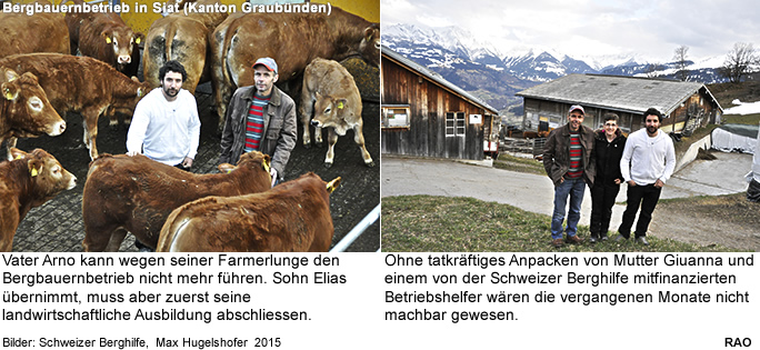 Arno Casanova ist gesundheitlich nicht mehr in der Lage, seinen Bergbauernbetrieb zu führen. Zum Glück will Sohn Elias übernehmen. Aber dafür fehlt dem gelernten Schreiner eine Landwirtschaftslehre. Bis diese fertig ist, sind Casanovas auf einen Betriebshelfer angewiesen. Doch der ist teuer. Zu teuer für die Bergbauern. Die Schweizer Berghilfe überbrückt den Engpass.