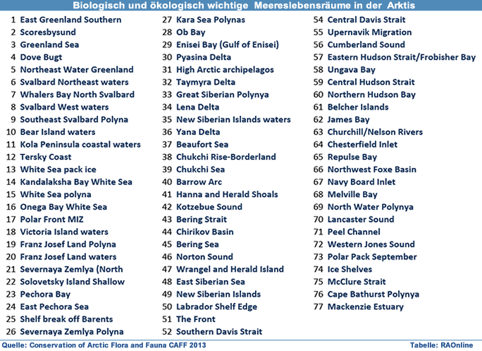 | Quelle: Conservation of Arctic Flora and Fauna (CAFF), Oktober 2013, (Text: RAOnline) |