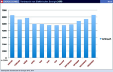 - Die im Vergleich zum Vorjahr deutlich kühlere Witterung (Heizenergie): Die Heizgradtage nahmen gegenüber 2009 um 12,7% zu.