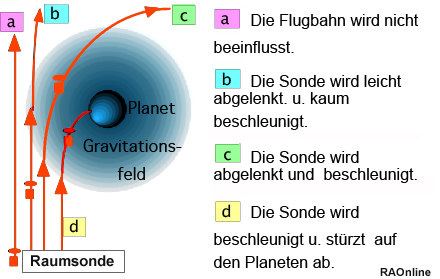 | Die Missionsingenieure wandten dabei die Swing-by-Technik an, welche die Gravitationskräfte der angeflogenen Planeten zum Beschleunigen und für Richtungsänderungen der Sonde benutzten. Die Flugplanung war nur mit genauen Detailkenntnissen über die Planeten und mit Rechenmodellen möglich, welche in modernsten Grosscomputern verarbeitet wurden. |