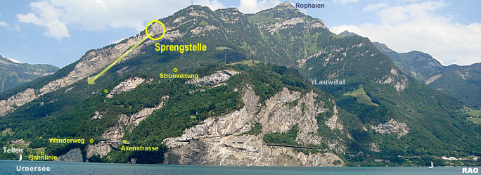 Axenrüti oberhalb der Axenstrasse und der Bahnlinie erfolgreich gesprengt: