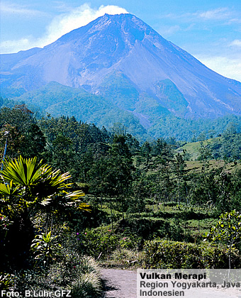 Indonesien liegt im sogenannten "Ring of Fire". Mitten durch das Inselreich von Indonesien verläuft die Grenze von zwei erdbebenaktiven tektonischen Plattengrenzen. Die Bruchlinien gehören zum zirkumpazifischen "Ring of Fire". Plattengrenzen werden häufig von aktiven Vulkanen gekennzeichnet, daher der Name "Feuerring". Indonesien hat zahlreiche bekannte Vulkane (siehe: Vulkanbilder). |