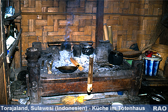 Es kann mehrer Jahre dauern, bis das Geld für das Schlachten der Büffel und die Bewirtung der zahlreichen Gäste in den temporären Gästegebäuden auf dem künftigen Festgelände zusammengetragen ist. In der Zwischenzeit ruhen die Toten im Totenhaus und werden aus einer Küche "verpflegt".