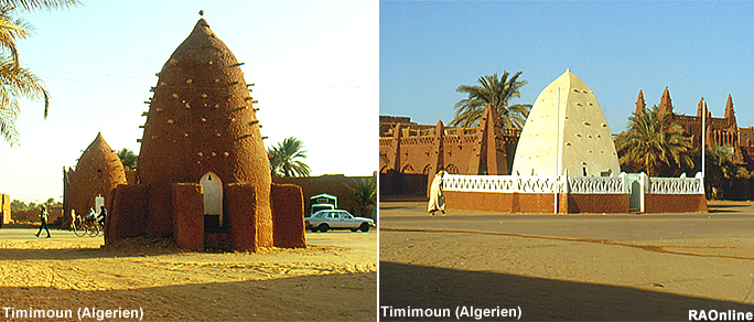 Die «Kouba»: Das Grab eines «Marabouts» «Koubas» sind kegelfömig aufgebaute Gebäude sind die Gräber von islamischen Heiligen, den «Marabouts». Die meistens aus Lehm erbauten, oft mit einem weissen Kalkanstrich versehenen Gedenkstätten, enthalten Reliquien der heiligen Männer.