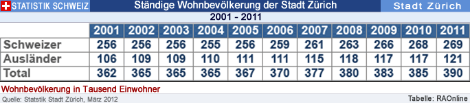 | Ständige Wohnbevölkerung der Stadt Zürich |
