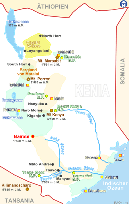 Kenia isteines der schönsten Länder Afrikas: Das Meer mit den Stränden am Indischen Ozean, die Seen im Rift Valley, der imposanten Bergwelt im Bergland von Maralal oder um den Mount Kenya, den tropischen Urwäldern, die weiten Savannen und riesigen Wüsten im Norden und vor allem dem bunten Gemisch von unterschiedlichen Volksgruppen.