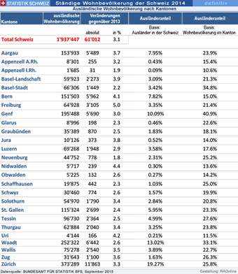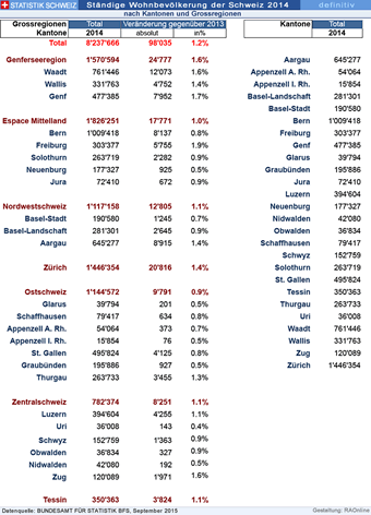 | Ständige Wohnbevölkerung der Schweiz 2014 |