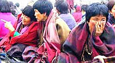 begging bowls in hand, they patiently wait for Penjore and the others to